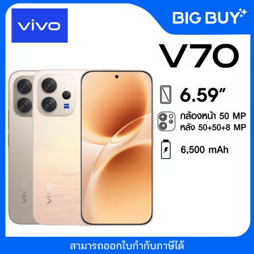 การเปิดตัวของ vivo V70 รอบนี้มากับแนวคิด “เสกช็อตลูกรักพระเจ้า” ที่เน้นทั้งดีไซน์พรีเมียม กล้อง ZEISS และสเปกระดับเรือธงในตัวเครื่องบางเฉียบ โดยรุ่นนี้มาพร้อมแบตเตอรี่ BlueVolt 6500mAh ชาร์จไว 90W มาตรฐานกันน้ำกันฝุ่น IP68 & IP69 และรันระบบปฏิบัติการ OriginOS 6 บน Android 16