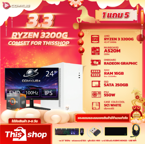 - คอมครบชุด แถม 5 ชิ้น: แผ่นรองเมาส์ + เมาส์ + คีย์บอร์ด NUBWO NKM632 + หูฟัง EGA + USB WIFI