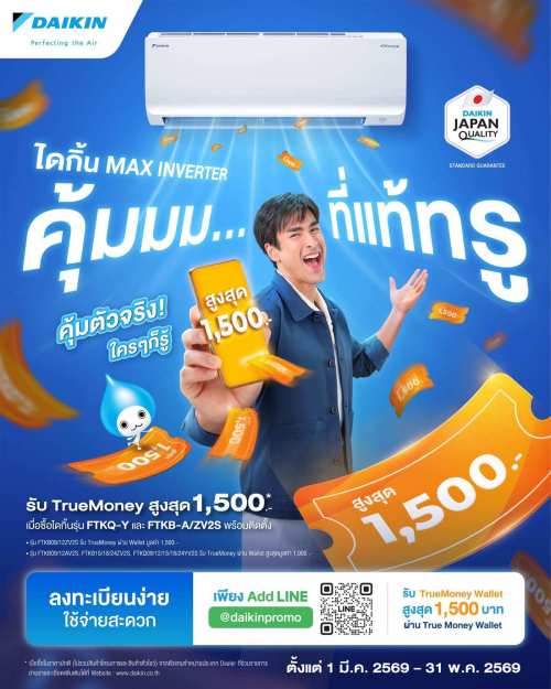 1.ระบบอินเวอร์ทเตอร์ ประหยัดไฟ 40 % ค่าไฟ ชั่วโมงละ 2.5 บาท