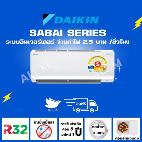 FTKB18ZV2S ขนาด 18,100 บีทียู ค่าSEER 18.20 ค่าไฟฟ้า 14,520 บาท ต่อปี ใช้กับห้องไม่เกิน 28 ตร.ม.